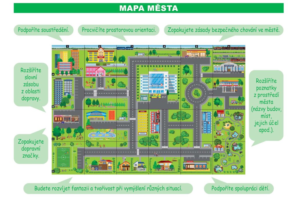 Poznávej, programuj, objevuj! Soubor Doprava 2 obsahuje čtyři velké podložky: mapu