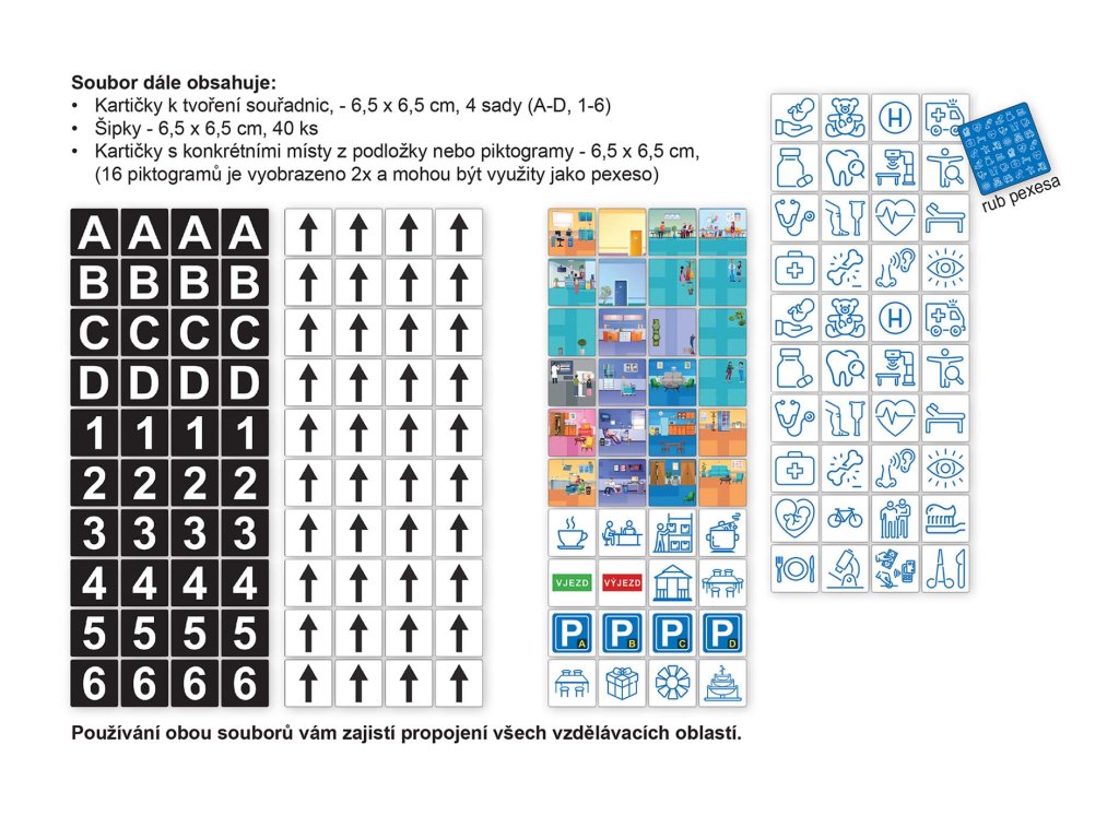 podložky (90 × 60 cm) – mapu nemocnice a plán zubního centra, které rozšiřují původní