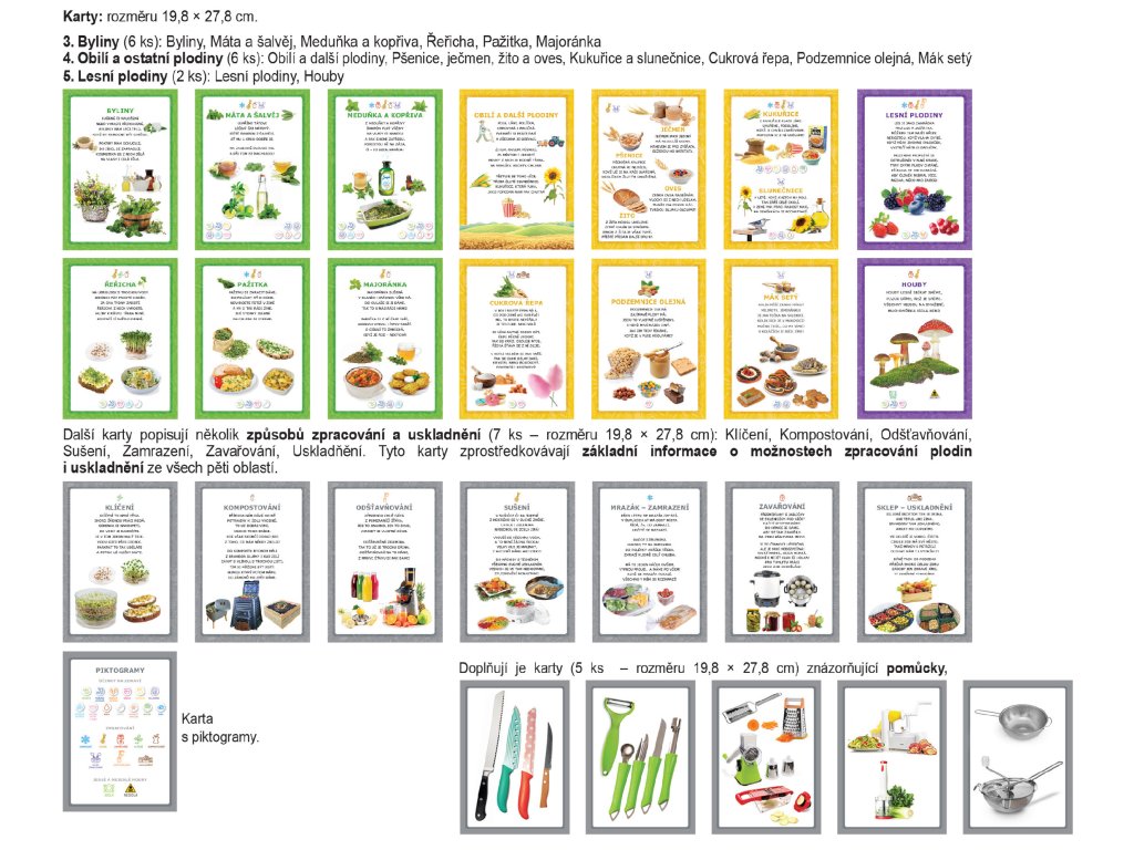náměty na činnosti různorodého charakteru, karty zachycující proces zpracování plodin a